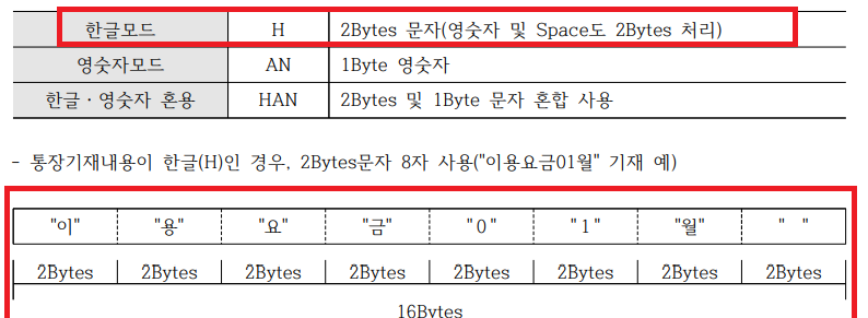 문서에 (영숫자 및 Space도 2바이트 처리)하라는데요