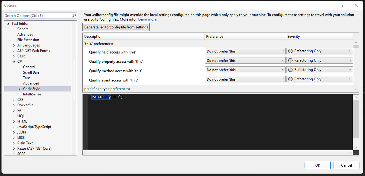 빌드가 잘 된다면 VS2022에서 EditorConfig가 바뀌었을 수도 있습니다.