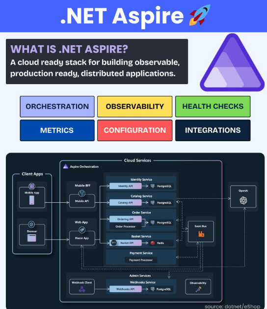 Aspire의 전신은 Project: Tye라는 실험용 프로젝트였고, 두 프로젝트 모두 Docker/Podman을 대체한다기보다, Docker/Podman 같은 컨테이너 도구를 "활용"하는 방식으로 동작합니다.