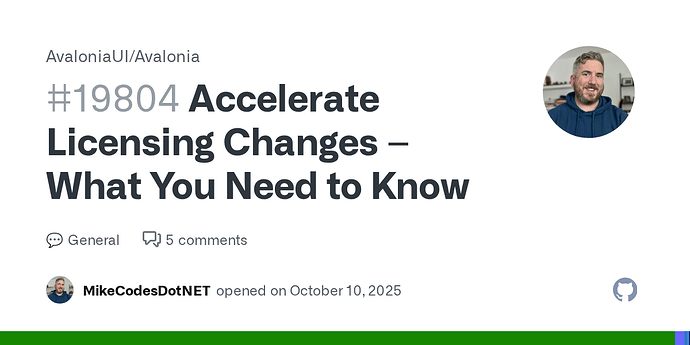 참고로, 올해 중반 쯤이었나 Avalonia를 사용하는 한 기업에 커뮤니티 환원 차원에서 꽤 큰 돈을 Avalonia 개발팀에 기부했고, 이것 때문에 자금 여유가 생겨서 Avalonia Accelerate의 정책에도 변화가 있을 거라고 했었습니다.