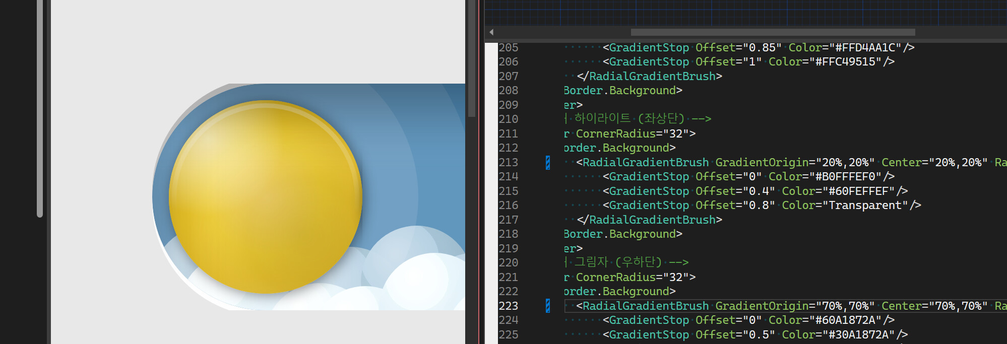 그런데 설정값이 같아도 아발로니아랑 WPF랑 차이가 있더군요.