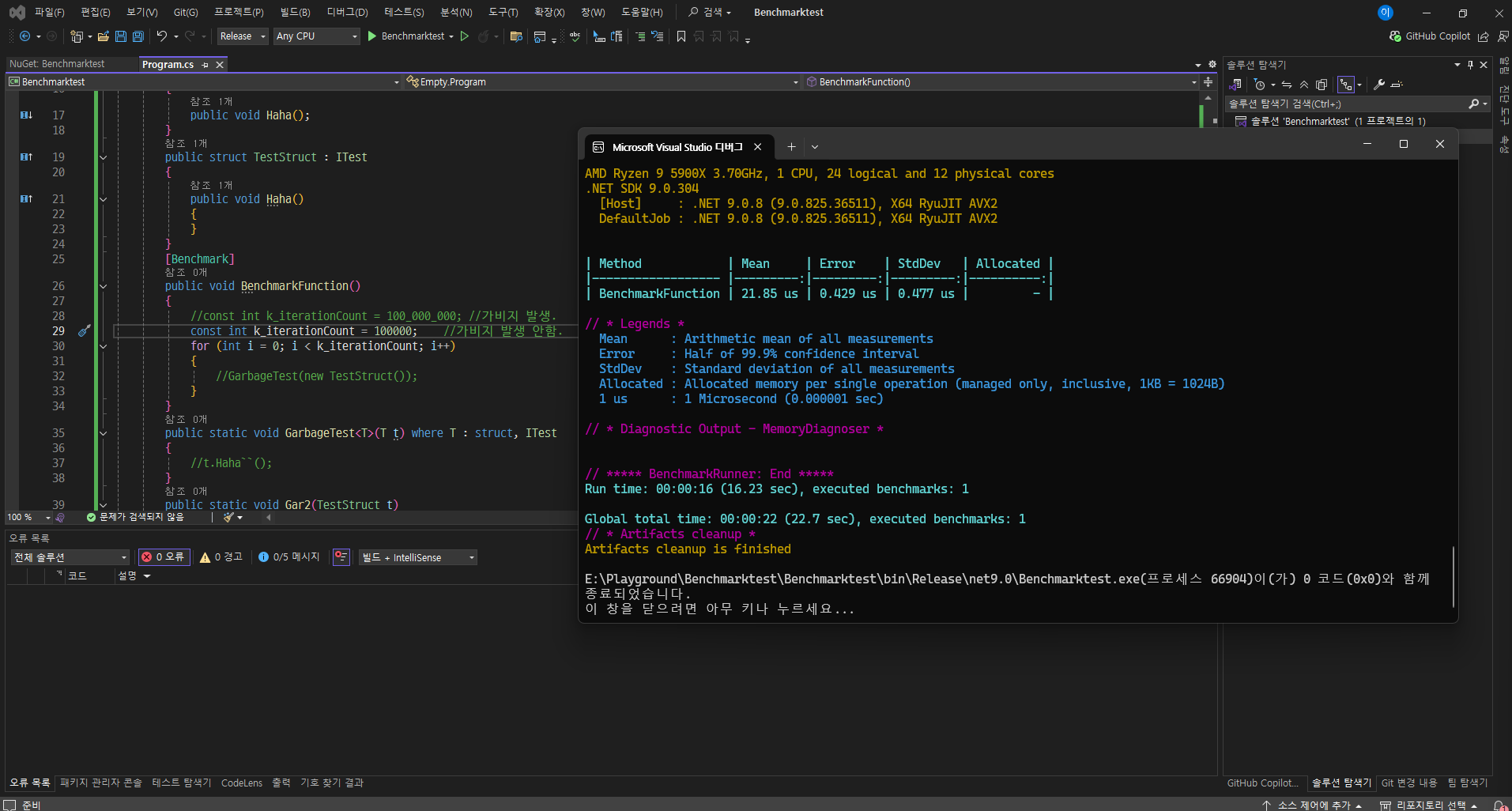 C# 에서 BenchmarkDotNet을 사용하여 성능 테스트(가비지 할당관련) 를 하고 있었는데
