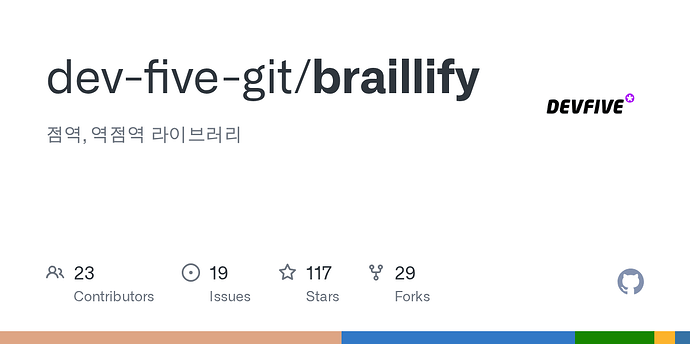 이후 라이트닝 토크가 끝나고 내려오는데 데브파이브 대표 오정민님을 만나 Braillify를 소개해주시며 .NET을 아직 지원하지 않는다고 하셔서 한번 해보자 마음 먹고 제출하게 되었습니다.