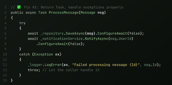 그리고, 예외의 처리 관습과 비동기 코드 관습은 별개로 인식되어야 할 것 같습니다.