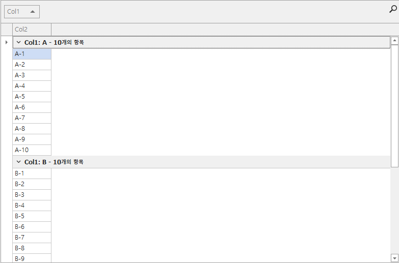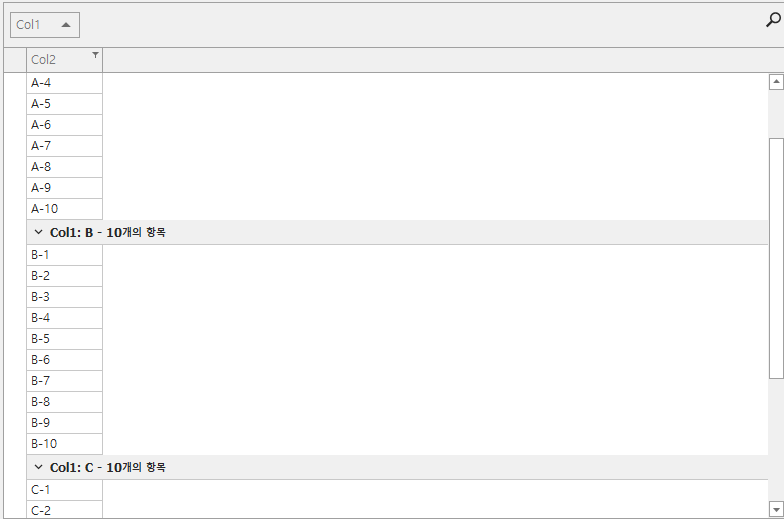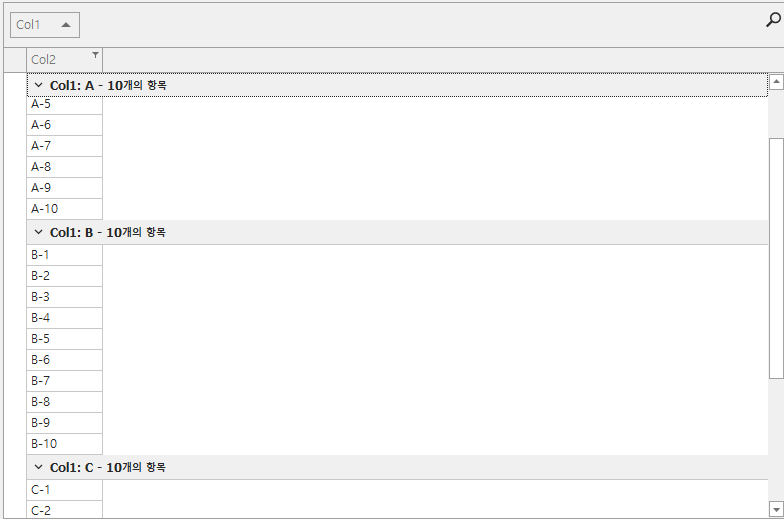 그리드에 그룹핑 후 기본 상태는 아래와 같고