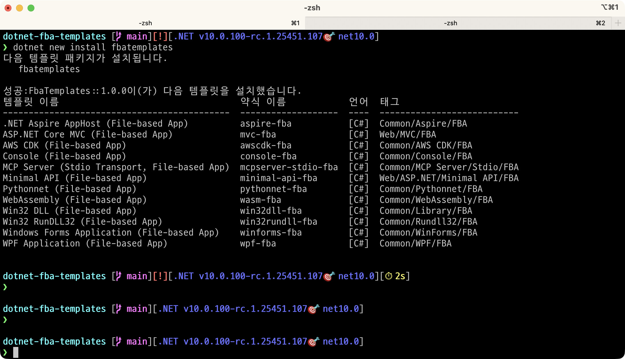 이전에 dotnet-fba-tool 프로젝트를 만들면서 받았던 피드백을 기반으로, 실제 닷넷 생태계에 좀 더 최적화된 형태의 새로운 File-based App 템플릿 팩을 만들었습니다.