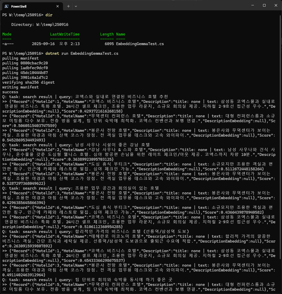 그래서 재빨리 File-based App과 Semantic Kernel용으로 개발된 sqlite-vec 확장 모듈을 붙여서 프로토타입 코드를 만들어봤는데, 잘 작동하는 것 같네요! ![]()