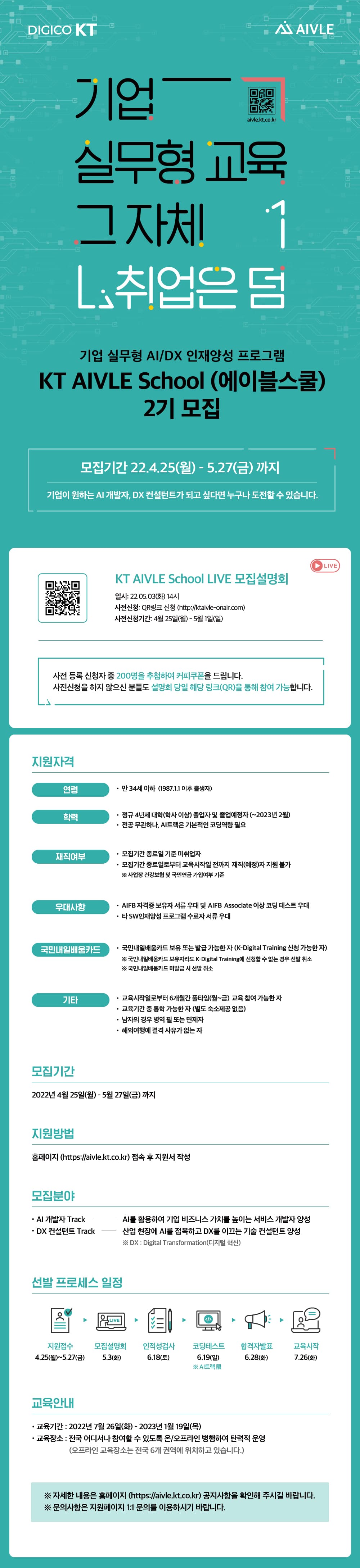 · 공고문 바로가기 : https://aivle.kt.co.kr/