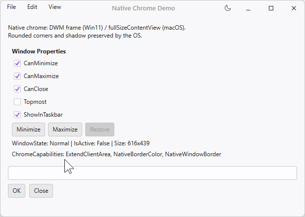 네이티브 크롬을 활용한 커스텀 타이틀 바 — 클라이언트 영역을 타이틀 바로 확장하면서 OS 기능(둥근 모서리, 시스템 버튼) 유지 (#81)