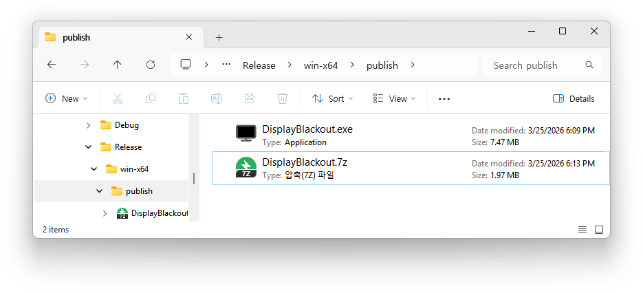이 앱은 관리자 권한 상승이 필요하지 않으며, 네트워크 요청을 보내지 않고, 텔레메트리나 사용자 데이터를 수집하지 않습니다. 설정은 %LocalAppData%/DisplayBlackout/ 아래의 JSON 파일에 로컬로 저장됩니다.