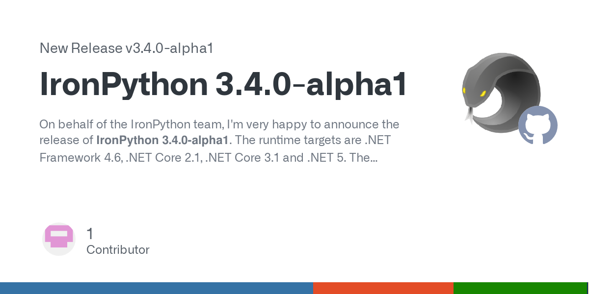 실제 Python 네이티브 구현체와 다소 거리가 있긴 하지만, 순수 .NET 런타임에서 실행할 수 있는 Python 구현체라는 점에 있어서 의미가 있는 IronPython이 오랫만에 Python 3.x 대에 대응되는 새 버전을 출시했습니다.