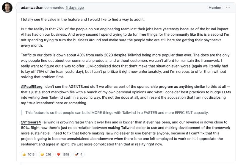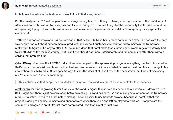 잡음 속에서 신호를 가려내기 — 최근 프로덕션 앱에서 겪었던 상황입니다. 앱이 갑자기 매우 느려졌습니다. 상사가 AI를 사용하여 문제를 진단했고, AI는 문제를 찾아냈습니다. 문제는 그 문제가 속도 저하의 “핵심” 문제가 아니라는 것이었습니다. 저는 지난 한 달 동안 앱 개발에 참여했기 때문에 제 경험상 그 문제가 “핵심” 문제가 아니라는 것을 알 수 있었습니다. 제 경험은 AI보다 훨씬 컸습니다. 결국 사람이 근본 원인을 찾아냈고, 문제는 비교적 빠르게 해결되었습니다.