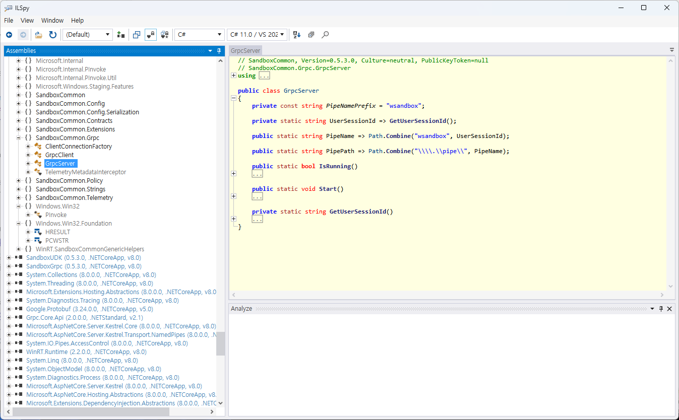 wsb.exe CLI 유틸리티가 내부적으로 어떻게 작동하는지 알고 싶어서 조금 살펴봤는데, 흥미로운 것을 찾았습니다. wsb.exe는 내부적으로 .NET Core 5로 빌드되어있는 것 같고, gRPC를 사용해서 Windows Sandbox를 제어하도록 만들어져있는 것 같네요!