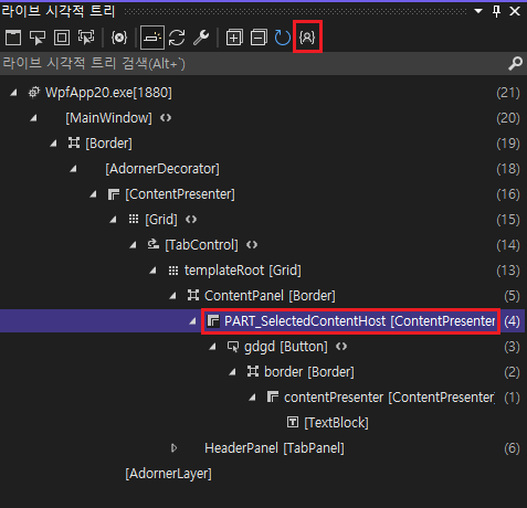 라이브 시각적 트리를 찍어보면, tabitem의 Datacontext와 매핑이 되는데, 동작이 왜 안되는 지 궁금합니다.