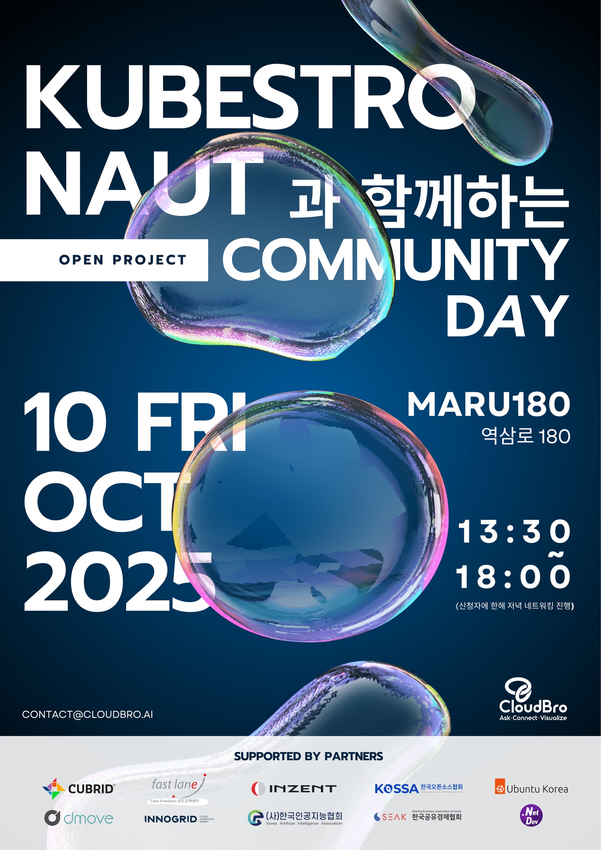 Kubestronaut과 함께하는 Community Day - Any Questions? Ask CloudBro! - 이벤터스 에서 등록 신청하실 수 있습니다.